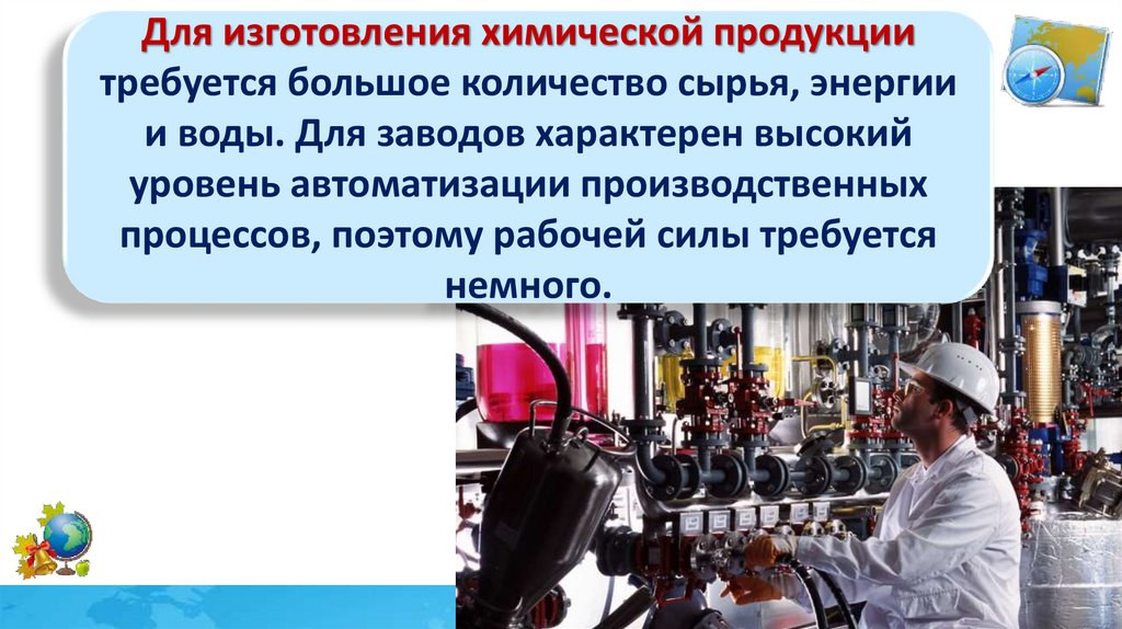 Для изготовления химической продукциитребуется большое количество сырья, энергии