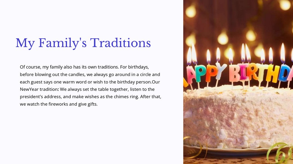 My Family's TraditionsOf course, my family also has its own traditions. For birthdays,