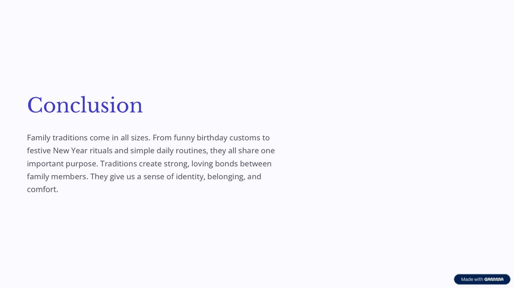 ConclusionFamily traditions come in all sizes. From funny birthday customs to