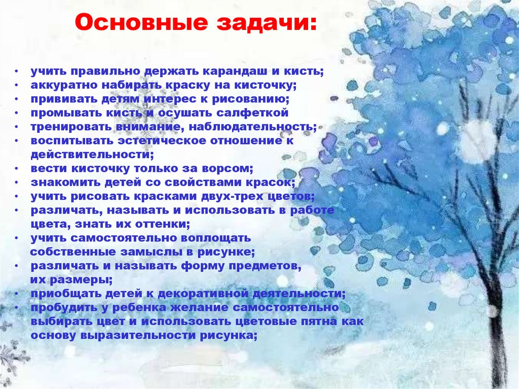 Основные задачи:учить правильно держать карандаш и кисть;