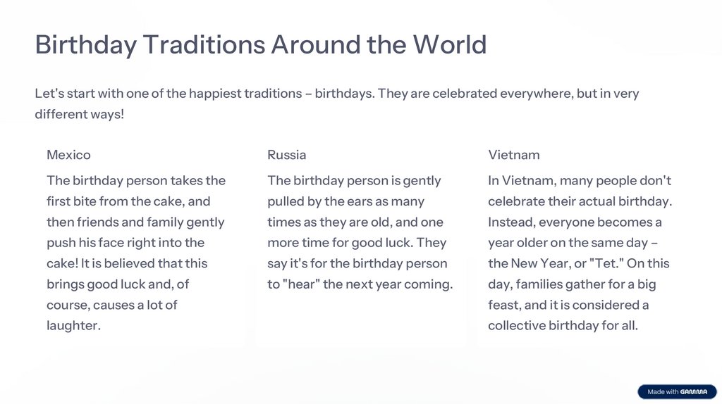 Birthday Traditions Around the WorldLet's start with one of the happiest traditions – birthdays. They are celebrated everywhere, but in very
