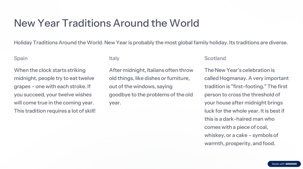 New Year Traditions Around the WorldHoliday Traditions Around the World. New Year is probably the most global family holiday. Its traditions are diverse.