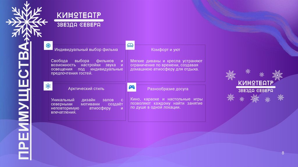 ПРЕИМУЩЕСТВАИндивидуальный выбор фильма