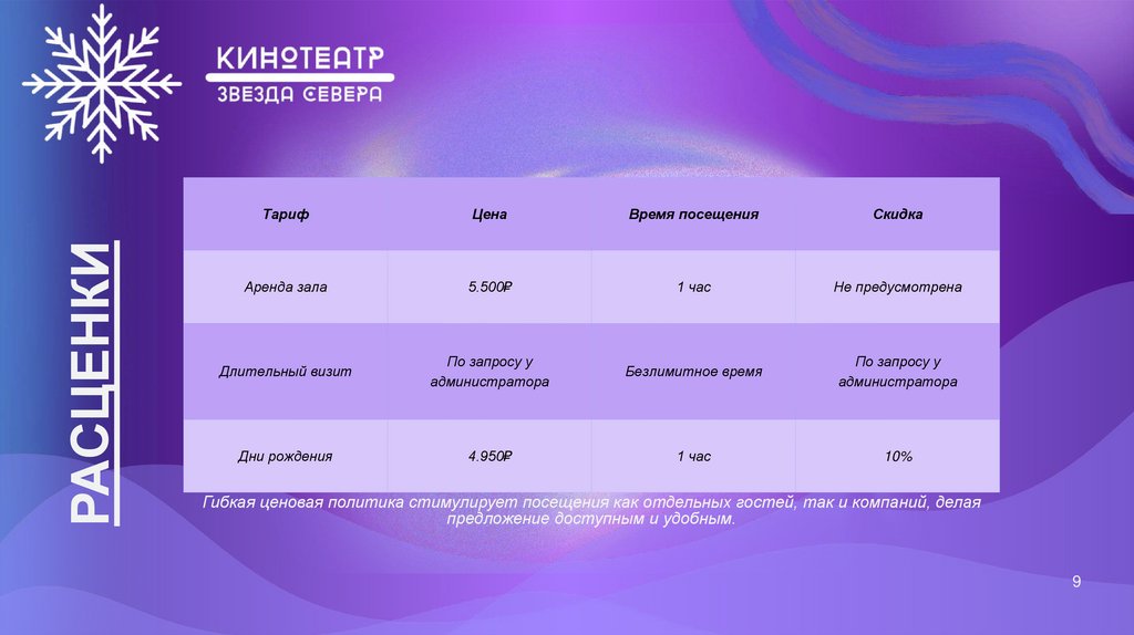 Гибкая ценовая политика стимулирует посещения как отдельных гостей, так и компаний, делая
