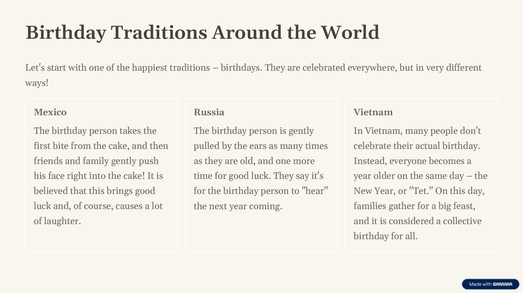 Birthday Traditions Around the WorldLet's start with one of the happiest traditions – birthdays. They are celebrated everywhere, but in very different