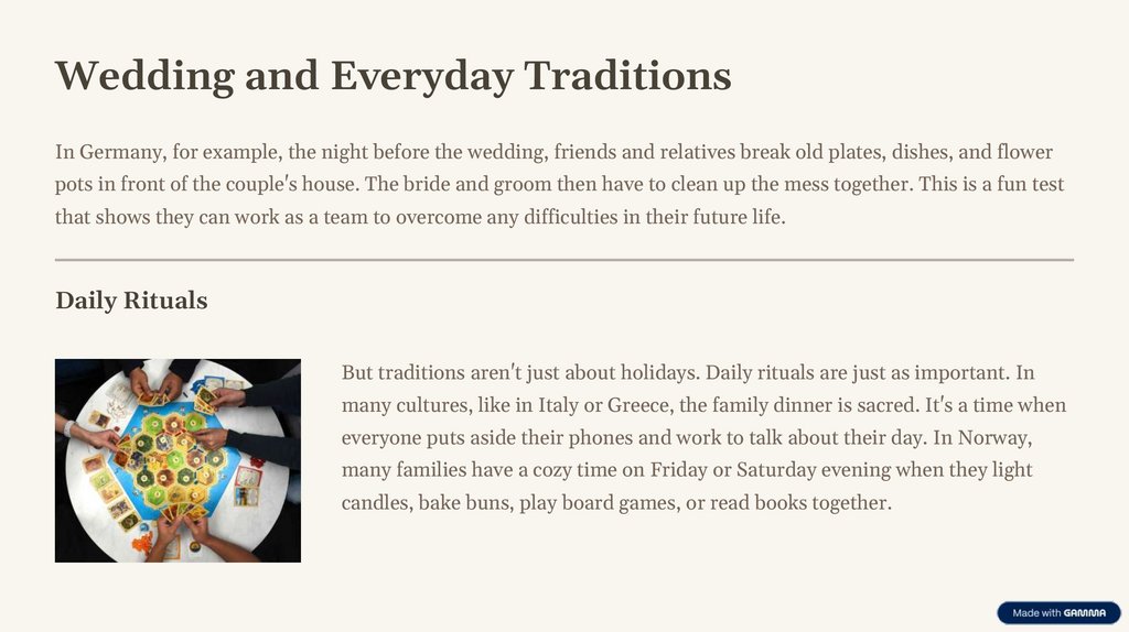 But traditions aren't just about holidays. Daily rituals are just as important. In