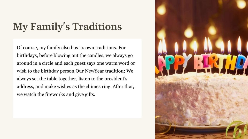 My Family's TraditionsOf course, my family also has its own traditions. For