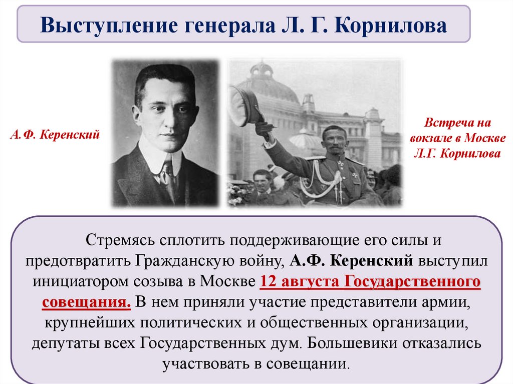 Выступление генерала Л. Г. КорниловаА.Ф. Керенский