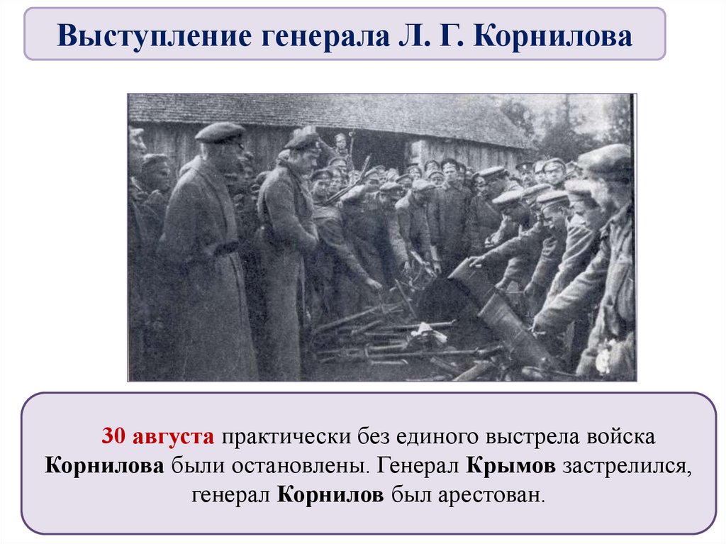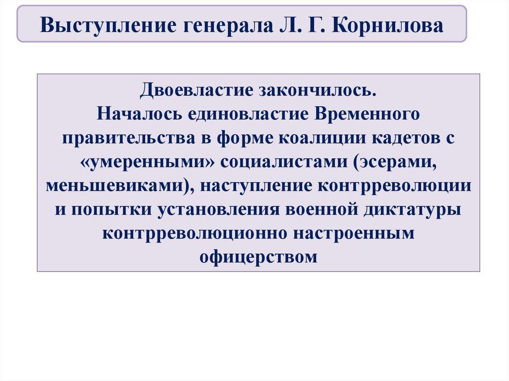 Выступление генерала Л. Г. КорниловаДвоевластие закончилось.
