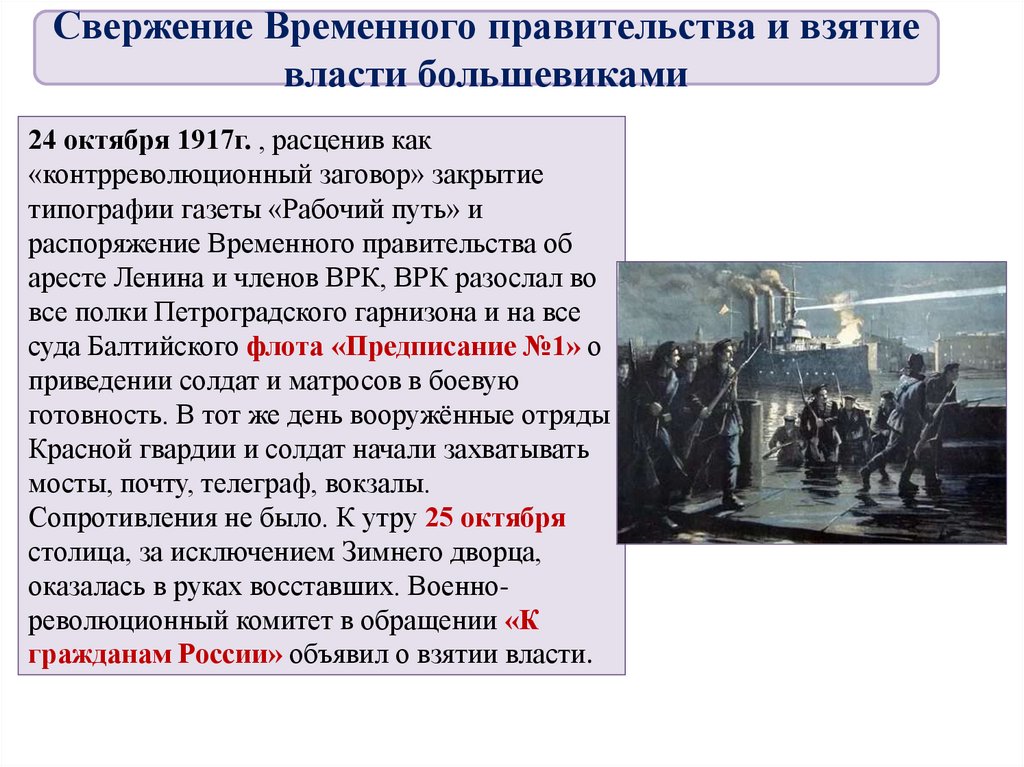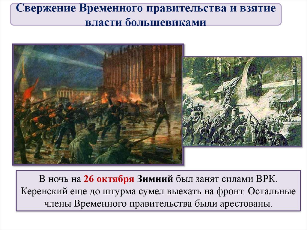 В ночь на 26 октября Зимний был занят силами ВРК.