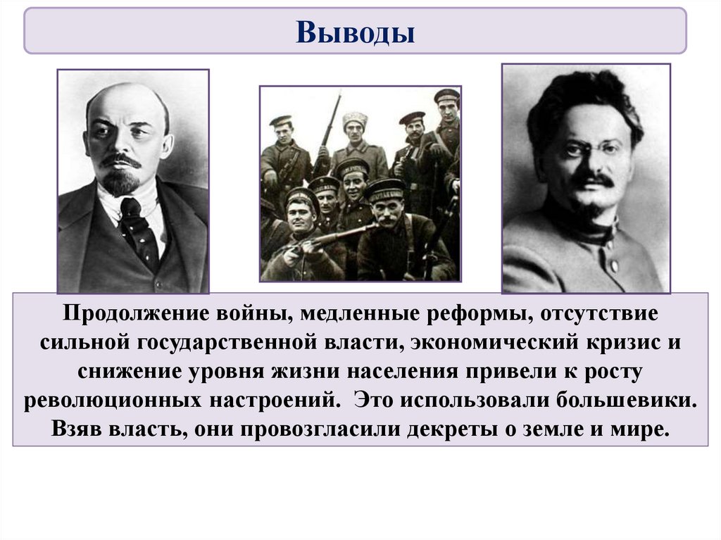 ВыводыПродолжение войны, медленные реформы, отсутствие