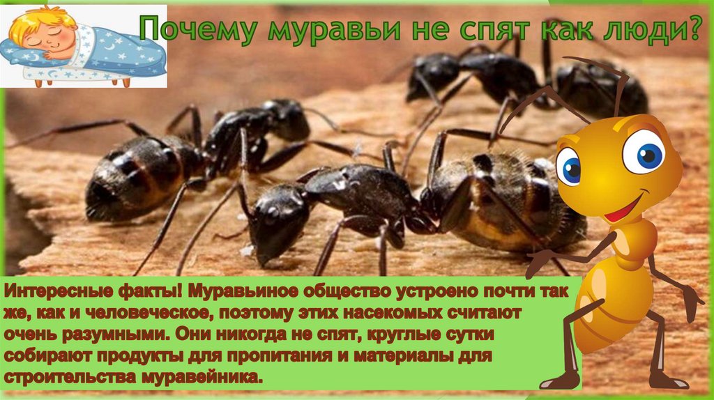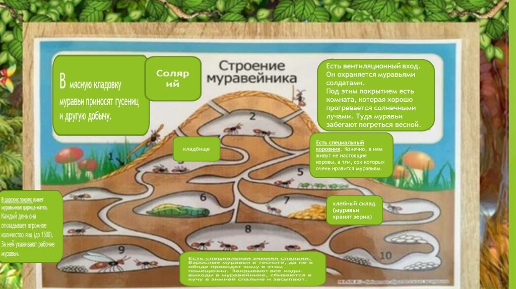 6. муравейник — это не просто кучка палочек, а целый подземный город! Существует около 12000 видов муравьев. Среди них самые