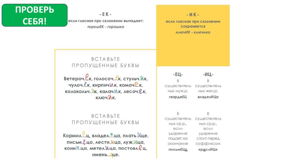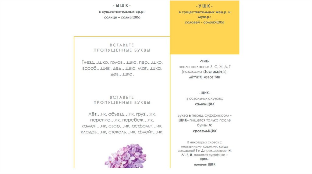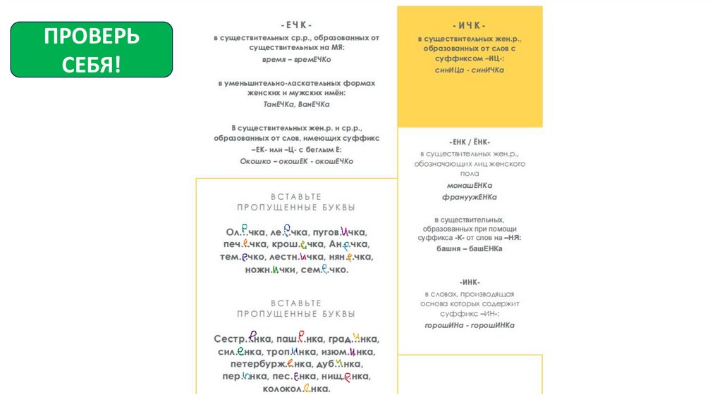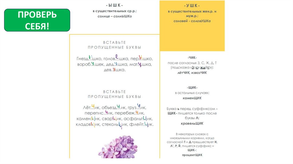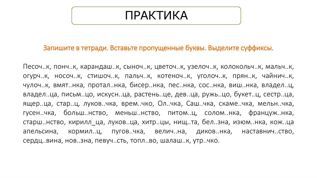 ПРАКТИКАЗапишите в тетради. Вставьте пропущенные буквы. Выделите суффиксы.