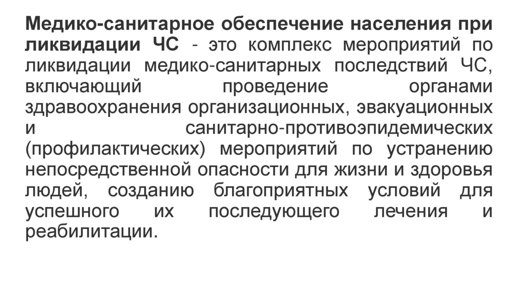 Медико-санитарное обеспечение населения приликвидации ЧС - это комплекс мероприятий по