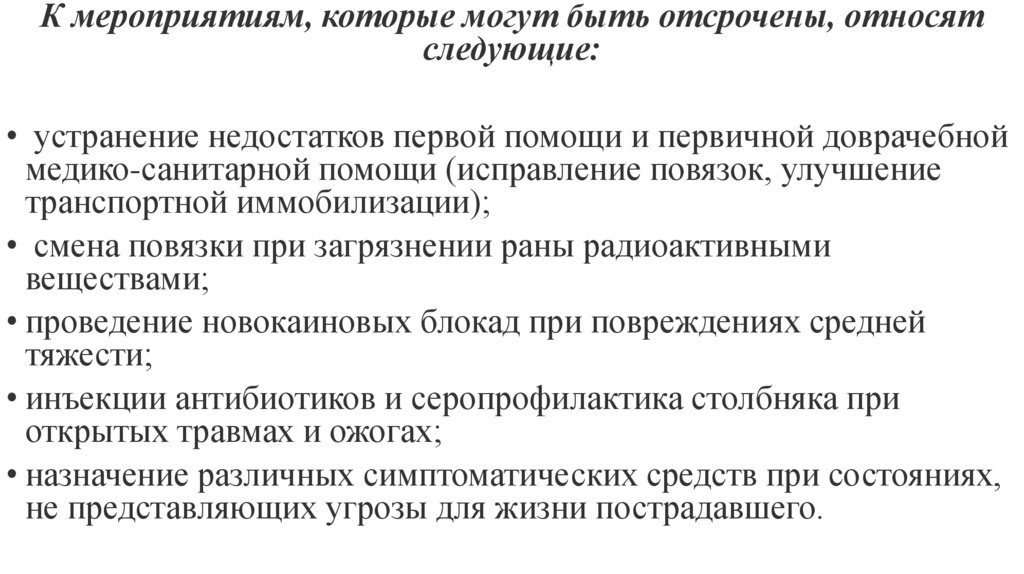 • • не нуждающихся в медицинской помощи на данном этапе (помощь может быть отсрочена);