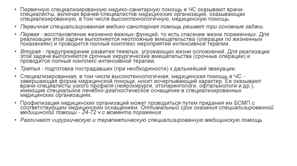 (больным) специализированную медицинскую помощь в зоне ЧС;