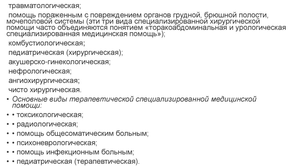 • • в терминальных состояниях, нуждающихся в паллиативной помощи, с травмой, несовместимой с