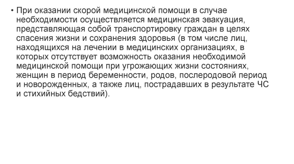 оказания им медицинской помощи в ходе эвакуации (в целях максимального