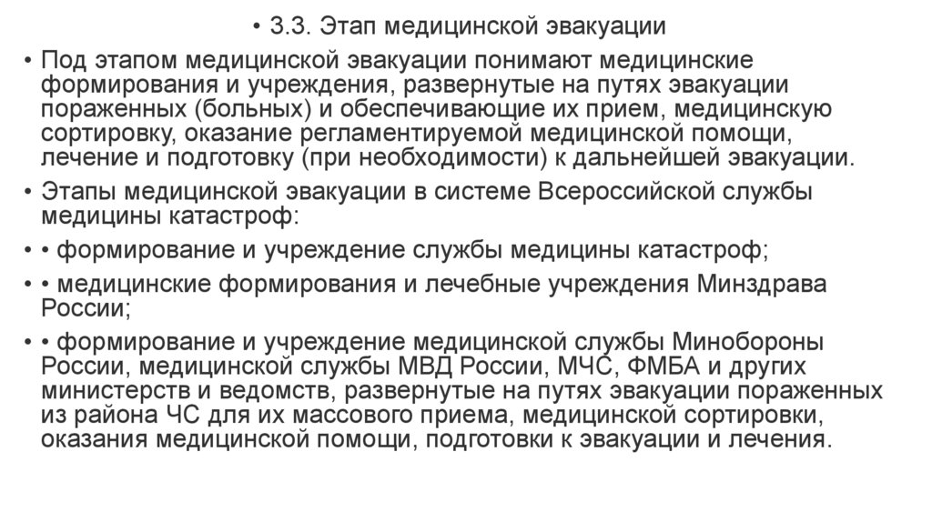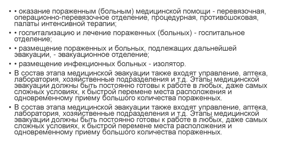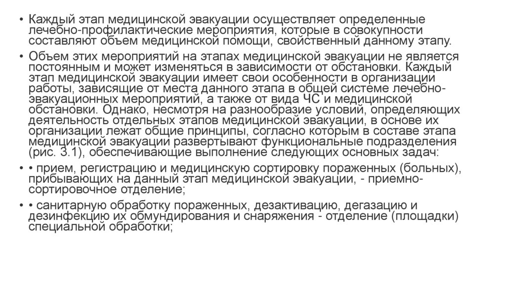 медицинской эвакуации и осуществляется во всех его функциональных подразделениях. Ее содержание