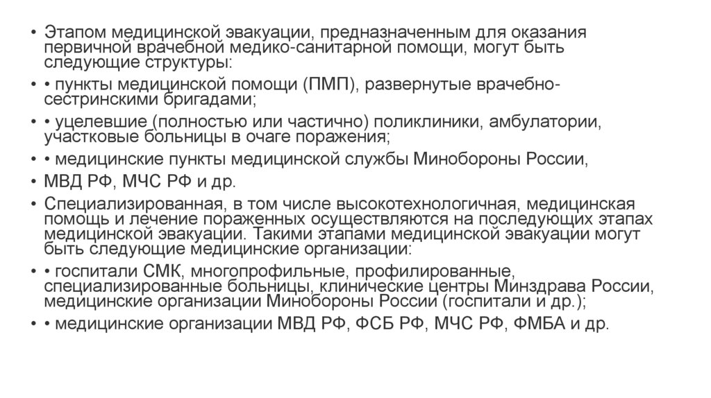 • • медицинские организации МВД РФ, ФСБ РФ, МЧС РФ, ФМБА и др.