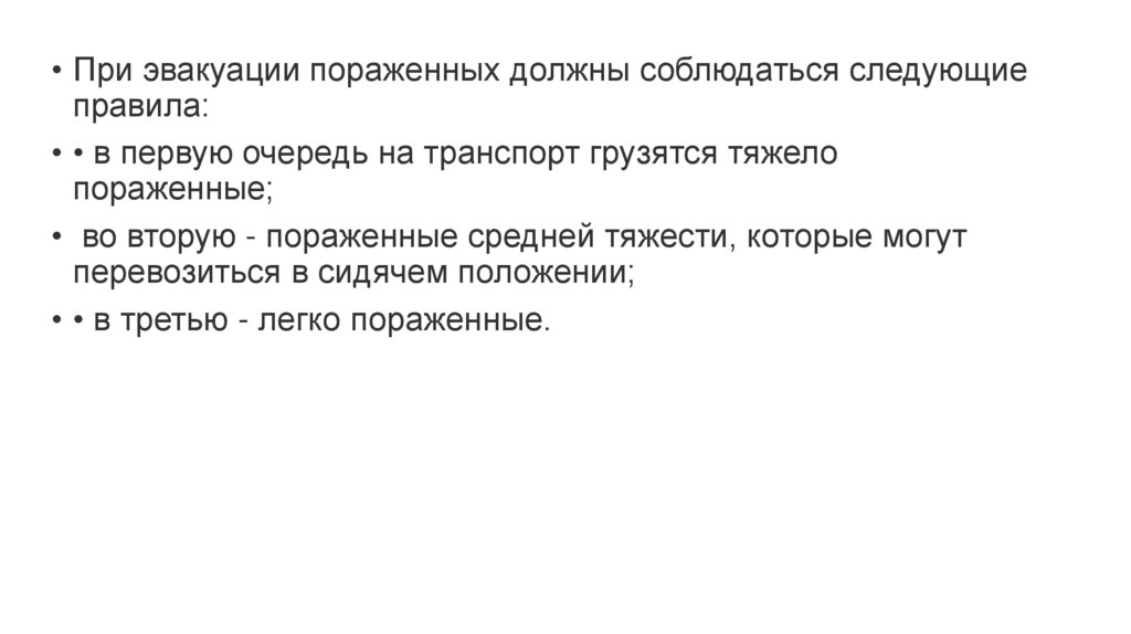• При эвакуации пораженных должны соблюдаться следующиеправила: