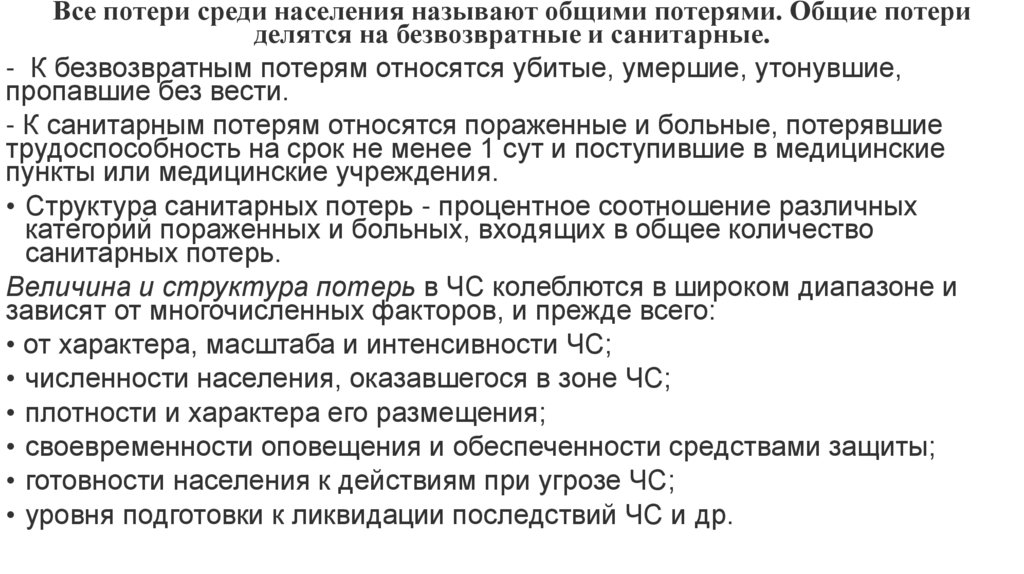 Факторы обстановки, которые имеют место при всех ЧС,сопровождающихся значительными потерями среди населения, и