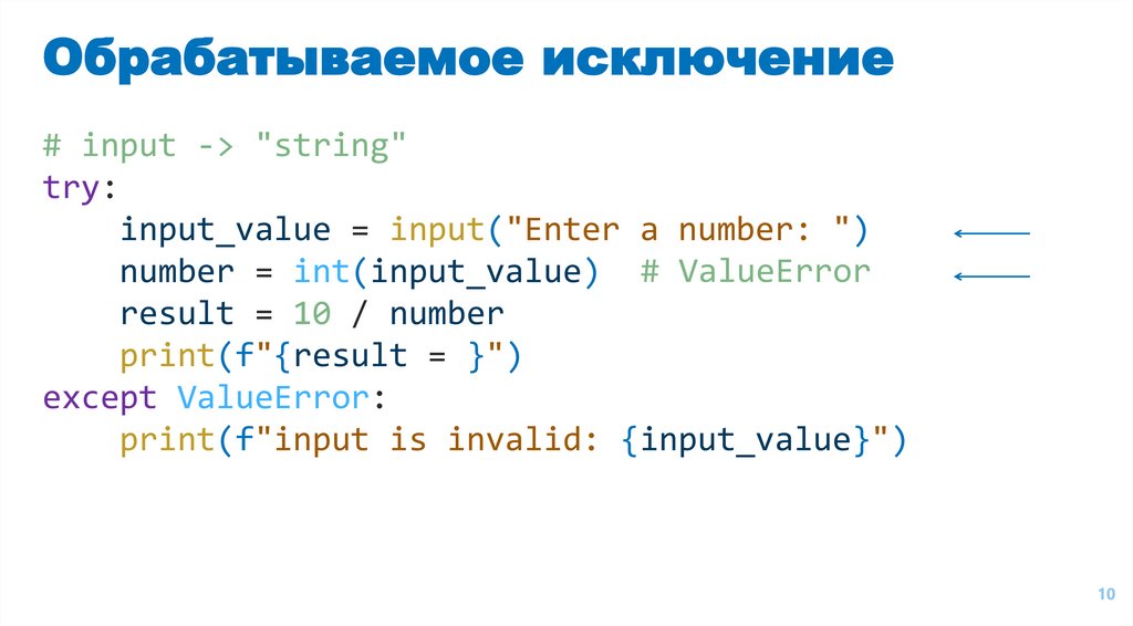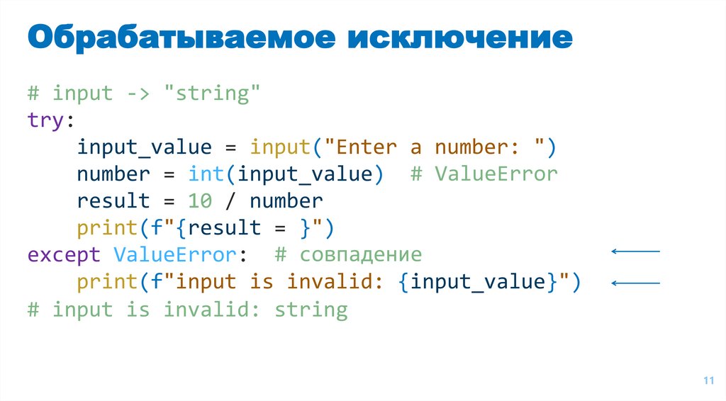 Обрабатываемое исключение# input -> "string"