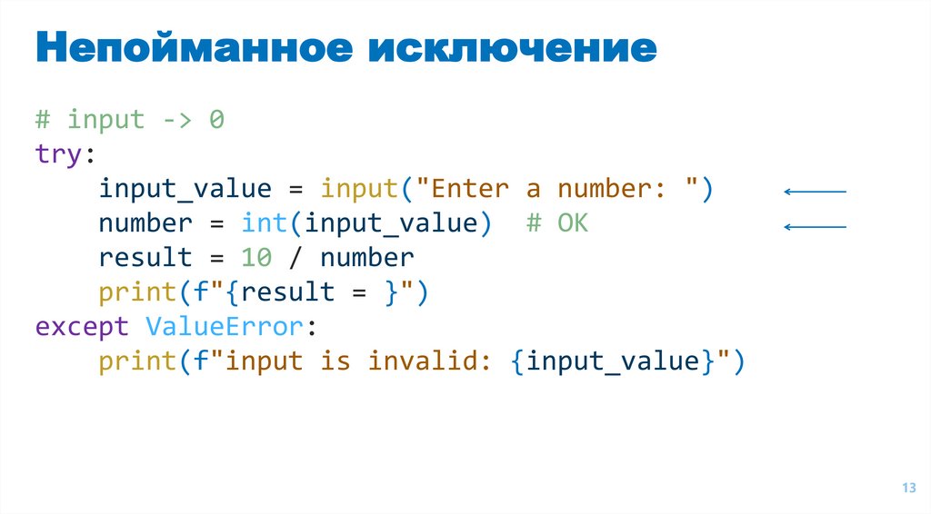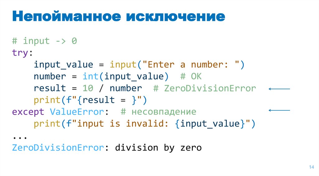 Непойманное исключение# input -> 0