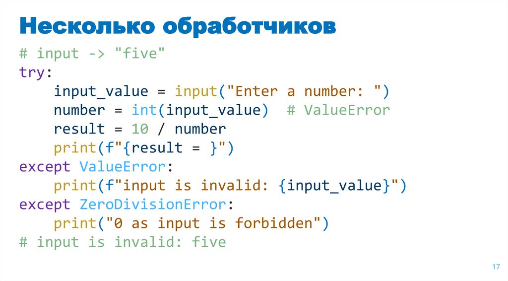 Несколько обработчиков# input -> "five"