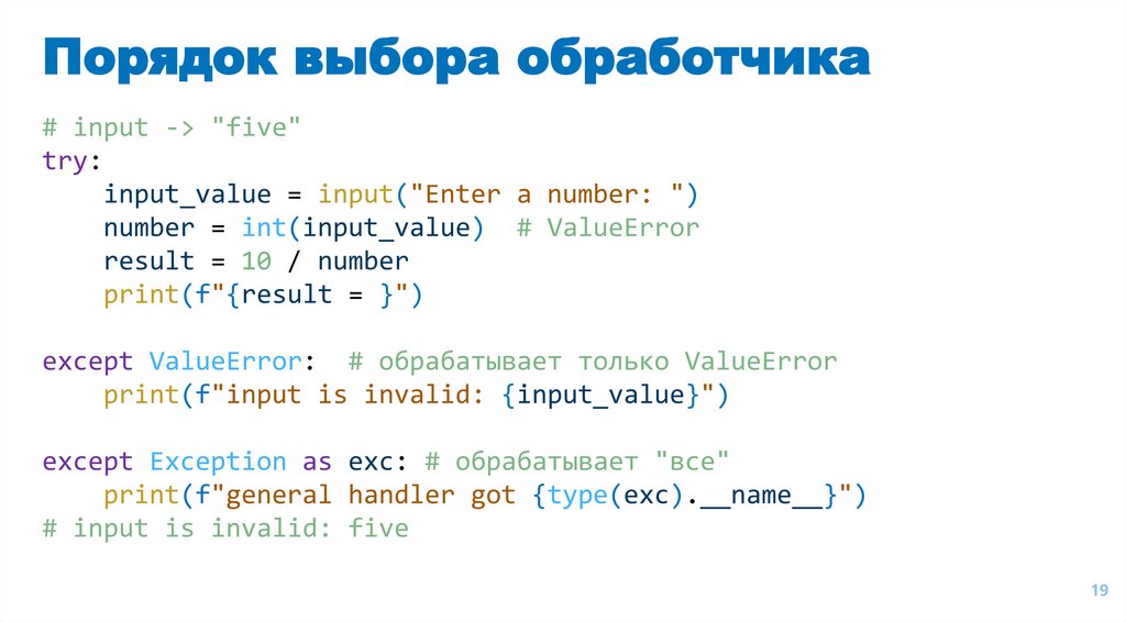 Порядок выбора обработчика# input -> "five"