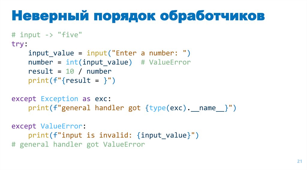 Неверный порядок обработчиков# input -> "five"