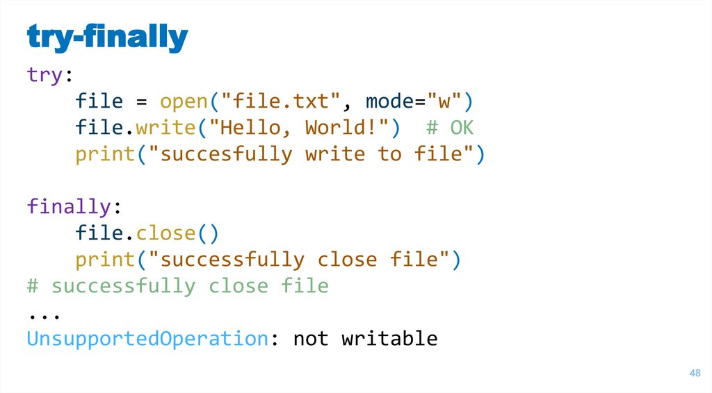 Примеры исключений# пример синтаксической ошибки