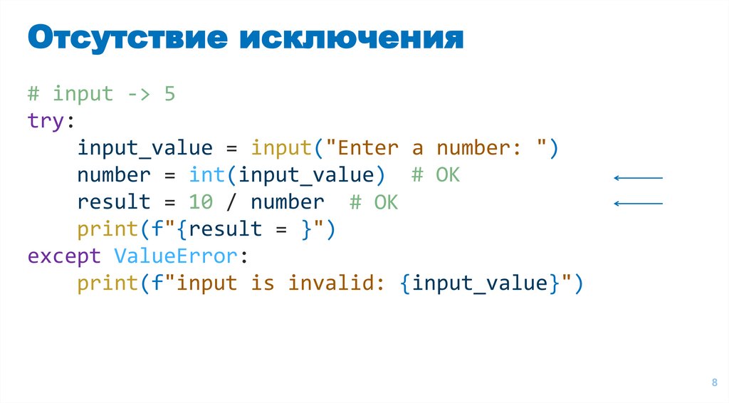 Отсутствие исключения# input -> 5