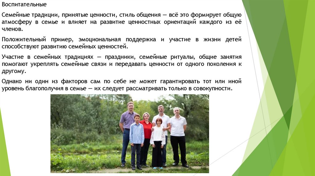 Трансляция ценностей и традиций. Семья передаёт поколениям ценности, традиции,