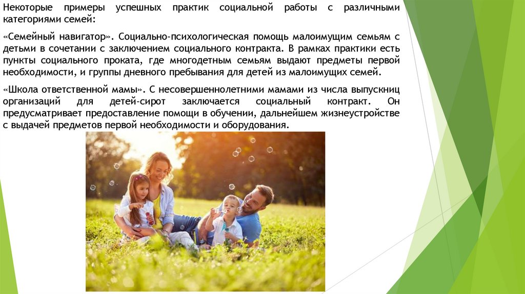 детьми в сочетании с заключением социального контракта. В рамках практики есть