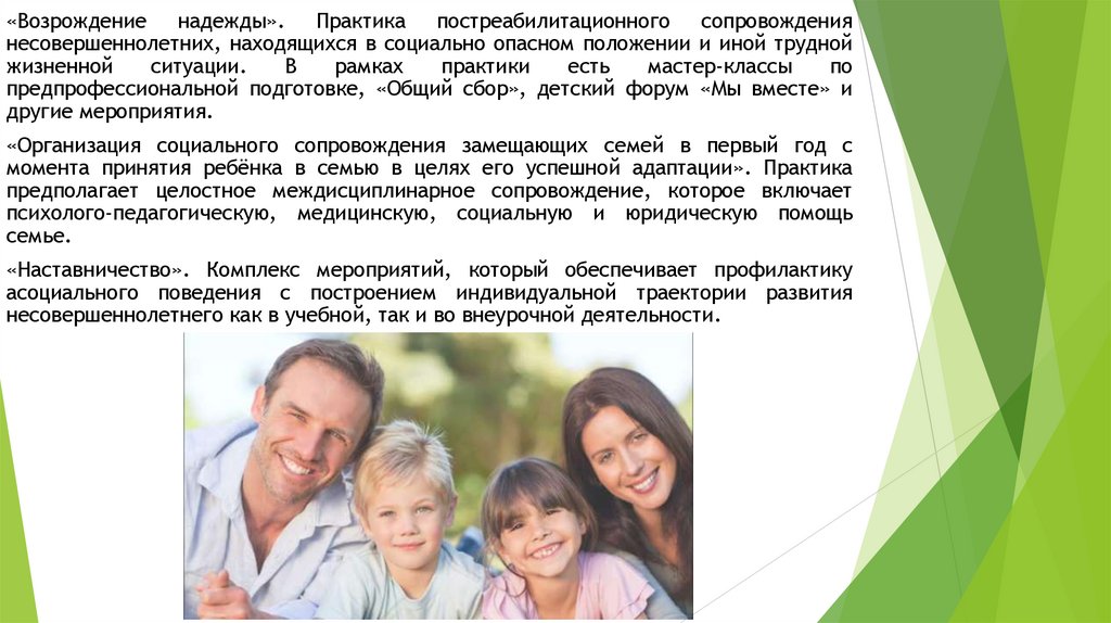 момента принятия ребёнка в семью в целях его успешной адаптации». Практика