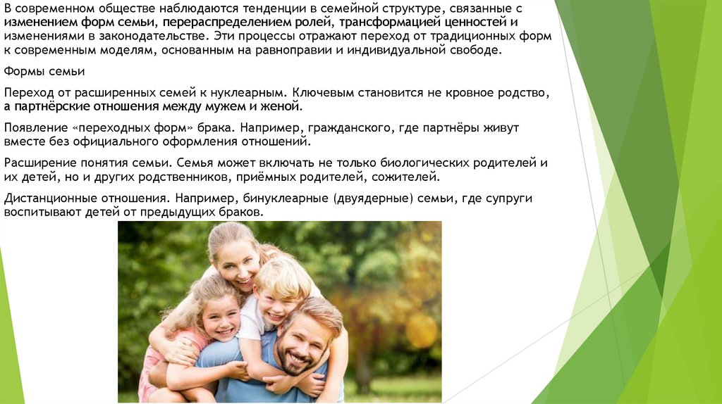 В современном обществе наблюдаются тенденции в семейной структуре, связанные сизменением форм семьи, перераспределением ролей, трансформацией ценностей и