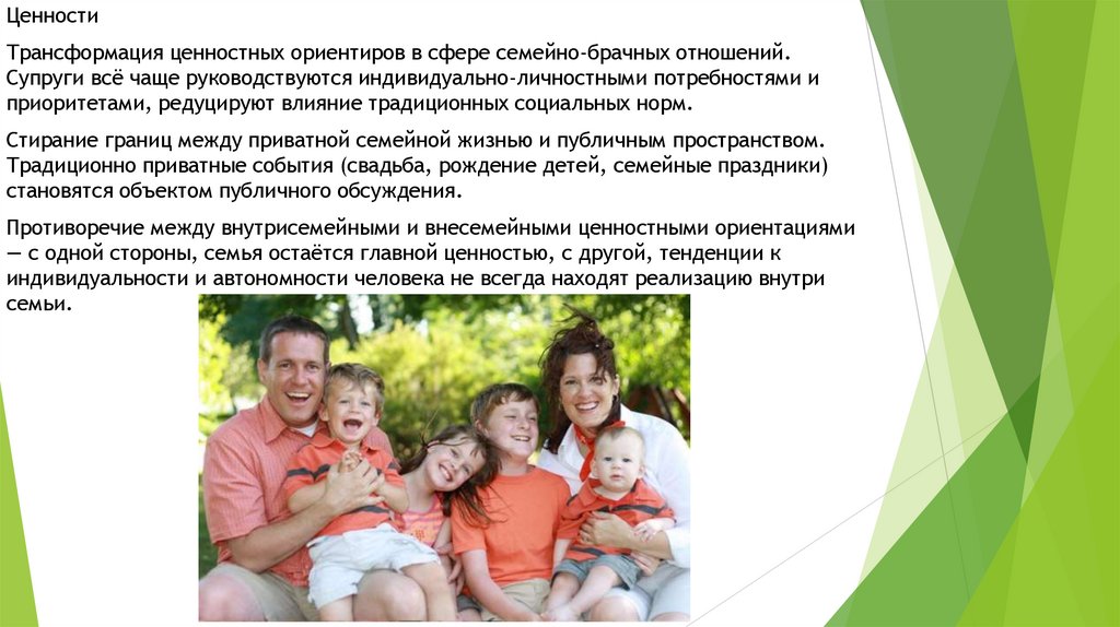 ЦенностиТрансформация ценностных ориентиров в сфере семейно-брачных отношений.