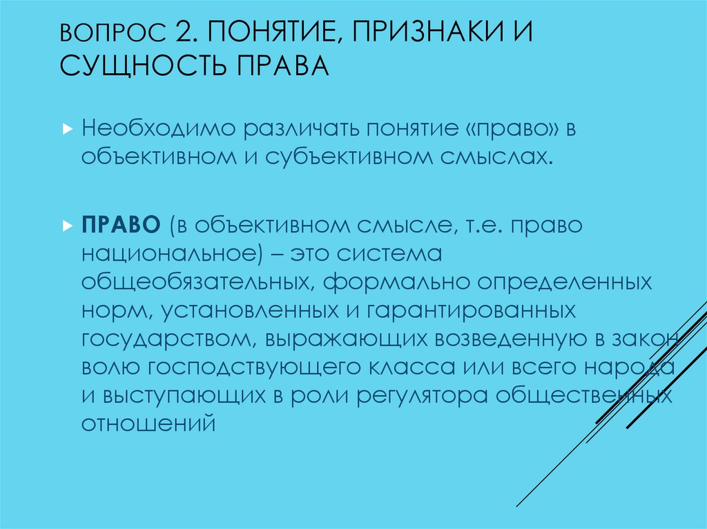 ВОПРОС 2. ПОНЯТИЕ, ПРИЗНАКИ ИСУЩНОСТЬ ПРАВА