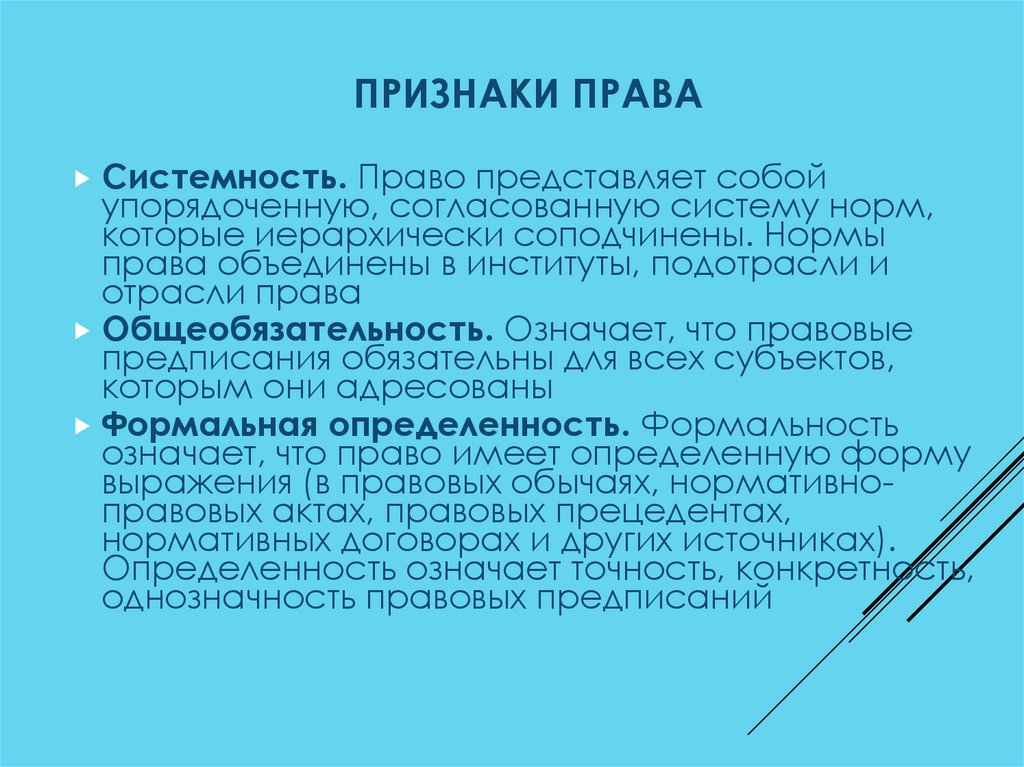 ПРИЗНАКИ ПРАВАСистемность. Право представляет собой