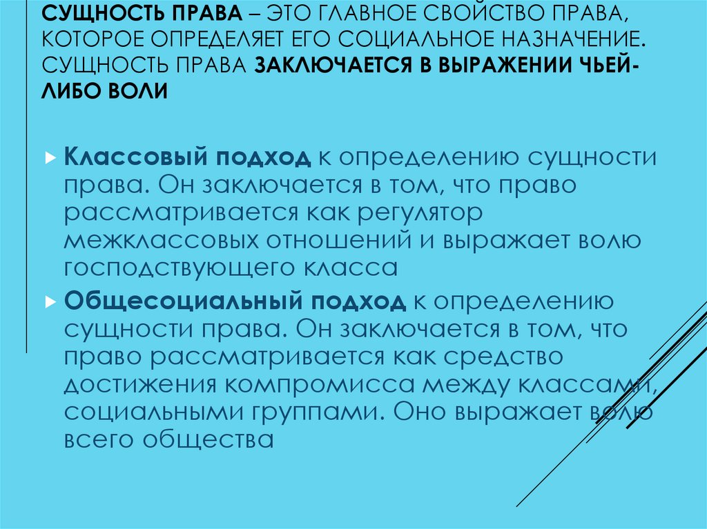 СУЩНОСТЬ ПРАВА – ЭТО ГЛАВНОЕ СВОЙСТВО ПРАВА,КОТОРОЕ ОПРЕДЕЛЯЕТ ЕГО СОЦИАЛЬНОЕ НАЗНАЧЕНИЕ.
