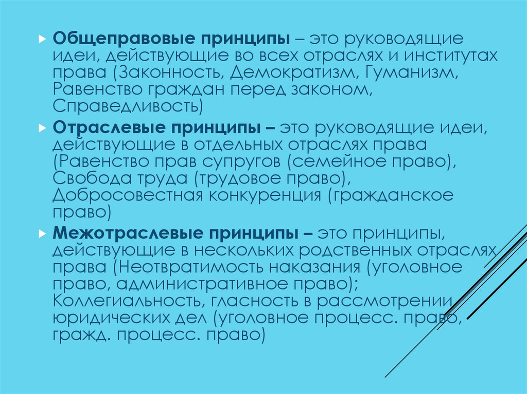 Общеправовые принципы – это руководящиеидеи, действующие во всех отраслях и институтах
