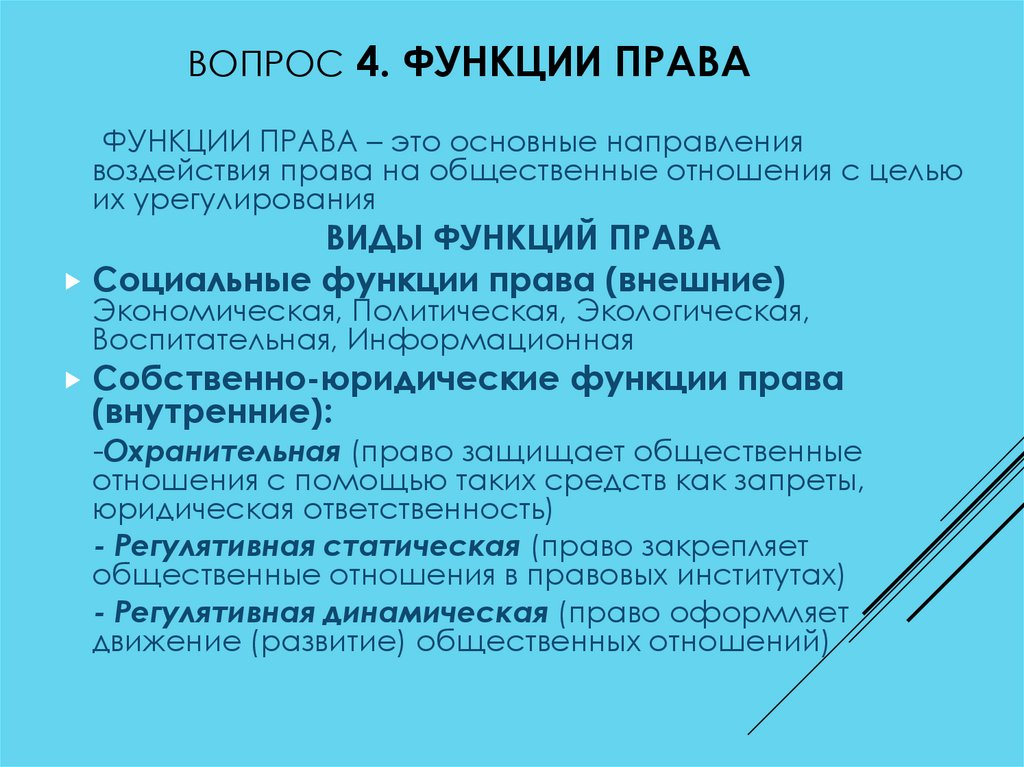 ВОПРОС 4. ФУНКЦИИ ПРАВАФУНКЦИИ ПРАВА – это основные направления