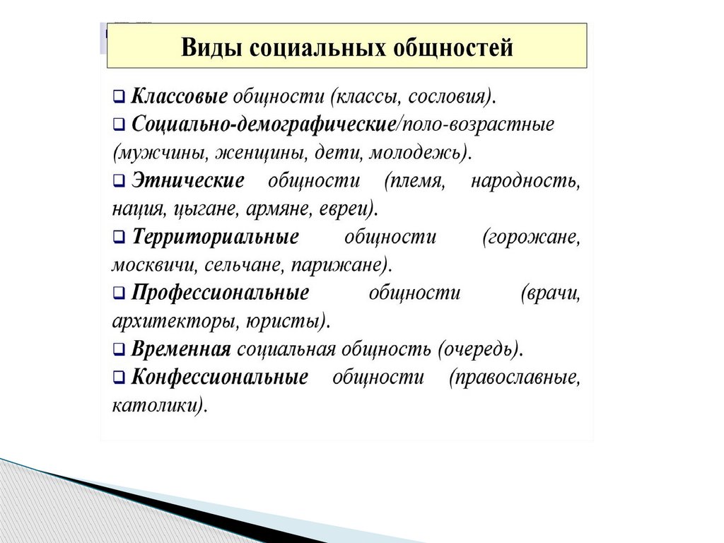 общностей, социальных слоев и групп
