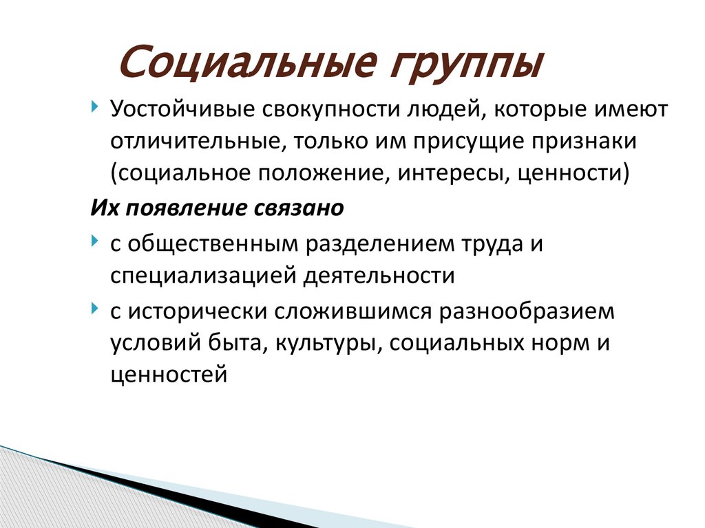 Социальные группыУостойчивые свокупности людей, которые имеют