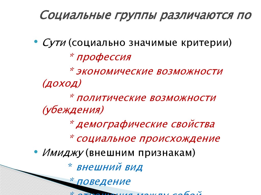 Социальные группы различаются поСути (социально значимые критерии)