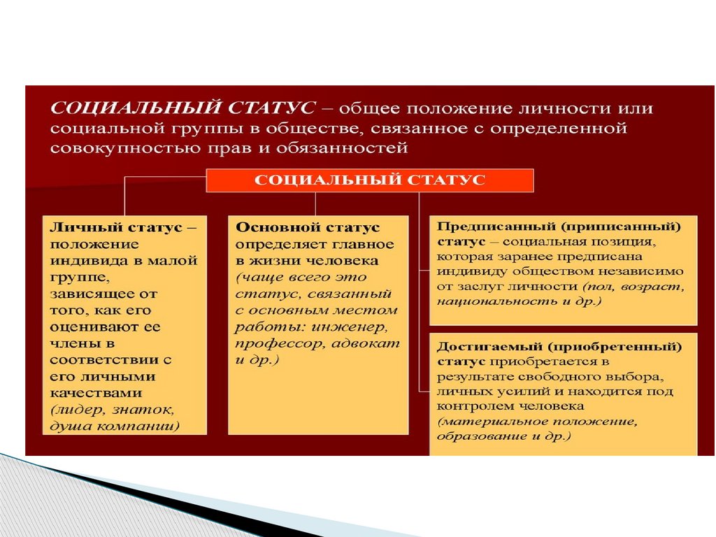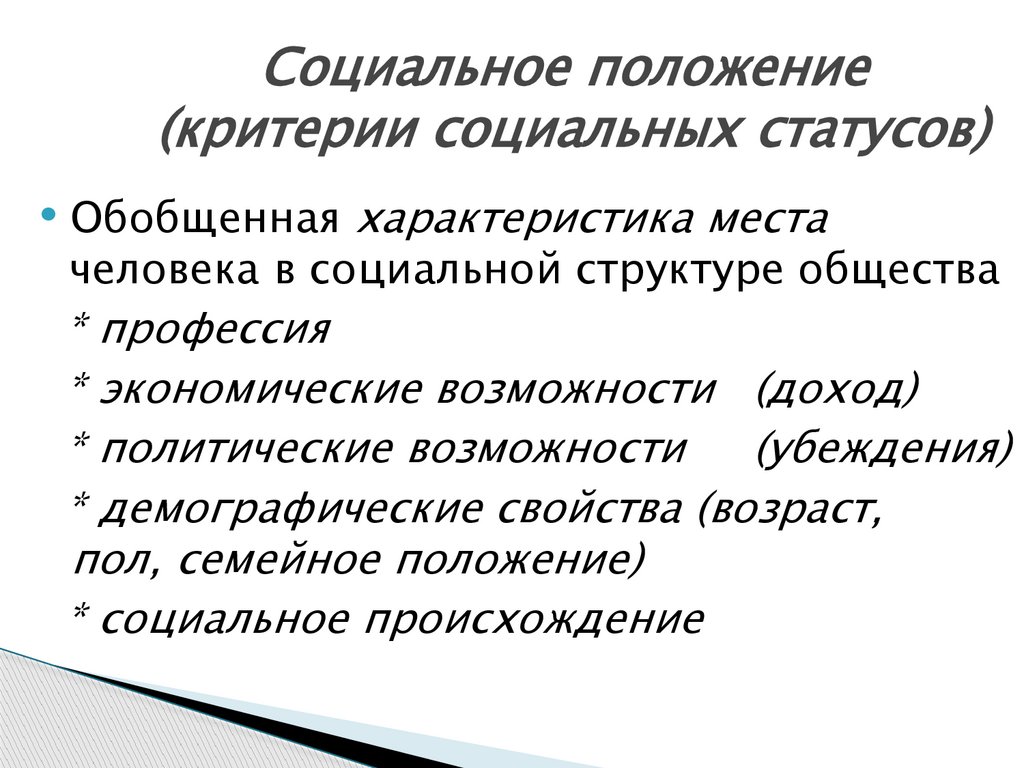 Социальное положение(критерии социальных статусов)
