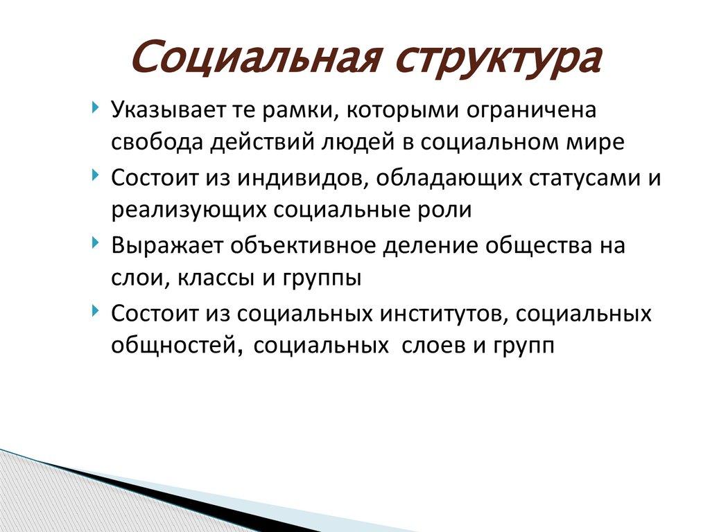 Социальная структураУказывает те рамки, которыми ограничена