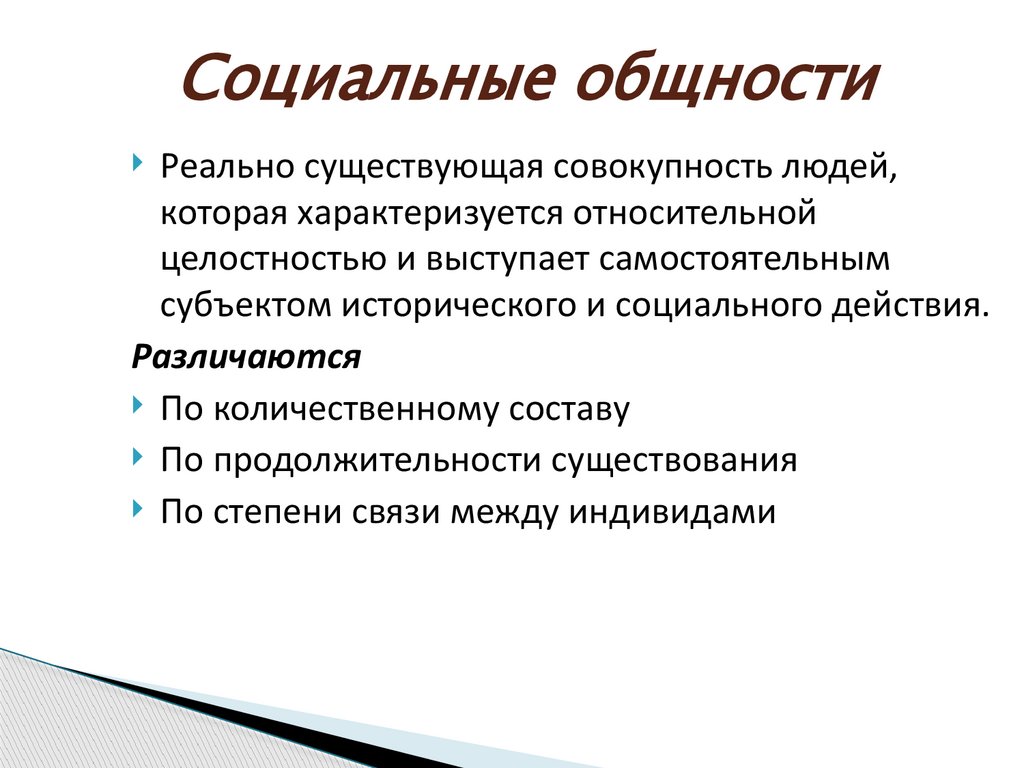 Социальные общностиРеально существующая совокупность людей,