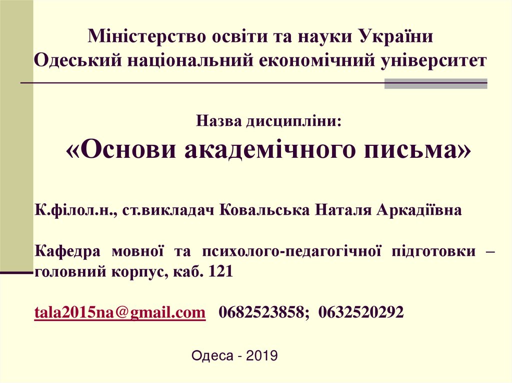 1. Міністерство освіти та науки України Одеський національний економічний університет